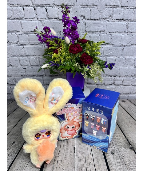 Tucked alongside the flowers is an extra-special treat: a Baby Three collectible plushie, hidden inside a blind box. Each box contains one of several adorable characters, you won’t know which one you’ve received until you open it!