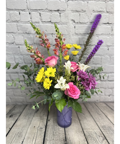 Celebrate her sweetest moments with Teleflora's Pretty Daydream Bouquet, a dreamy mix of soft, vibrant blooms beautifully arranged in Teleflora's Pretty Daydream Vase-a charming keepsake she'll enjoy long after Mother's Day.