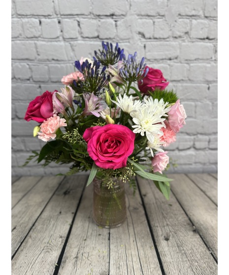 Bananas For You is a dreamy Valentine’s Day arrangement designed to charm from every angle. Featuring a romantic blend of purples, soft pinks, fresh greens, and crisp whites, this bouquet is artfully arranged in a sweet pink vase for an extra touch of love. You can also upgrade this sweet arrangement by pairing it with our Valentine's day Monkey!